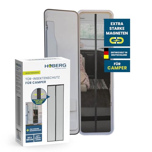 Hoberg Insektsskyddsgardin för campingvagn 60 x 180 cm | insektsnät dörr med XXL-magnetband | insektsskydd dörr för husvagnar | magnetiskt myggnät | självstängande