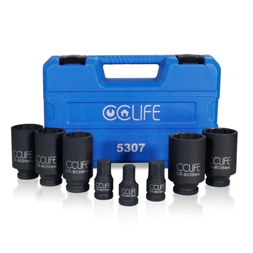 CCLIFE 8 delar 12 kanter slagnyckel uttag 1/2 tum multitand nöt-drivaxlar kraftuttag 30, 32, 34, 35, 36 mm insex bit hylssats 1/2 tum enhet 14 mm-17 mm-19 mm