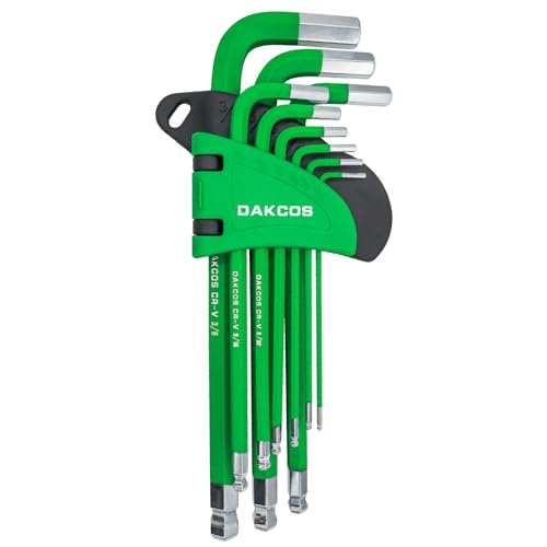 DAKCOS Sexkantsnyckelset, 9 delar insexnyckel, sexkantsnyckel, Imperial Ball End insexnyckel set 1/16 tum-3/8 tum, L-nyckel set med färgkodning