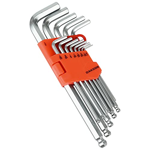 DAKCOS insexnyckel set 13 delar med kulhuvud insexnyckel sats vinkelnyckel set SAE/INCH med CR-V, 0,05 till 3/8 tum, i plastklämma