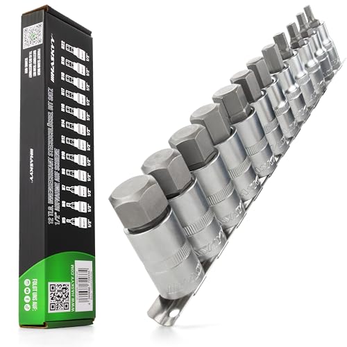 VORXEON 10 St 1/2 Tum Enhet Metrisk Påverkan Insexnyckel Hylsa Set 42CRMO Med Förvaringsfodral 5 Mm 6 Mm 8 Mm 10 Mm 12 Mm 14 Mm 16 Mm 17 Mm 18 Mm 19 Mm