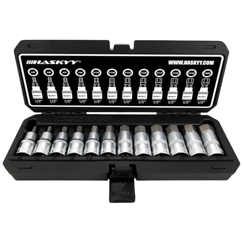 HASKYY Insexnyckel Insex Uttag set 1/2 tum nötter 12 st 5–22 mm mutter Hylsnyckel Bits Sexkant Set Nyckel på skena