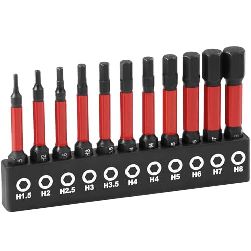 BAVUNV 9 stycken sexkantiga skruvmejslar 50 mm långa bits-set, 1/4 tum S2 slagnyckel bitssats, magnetisk hexagon insexnyckel skruvmejsel, för skruvdragare (H1,5/2/2,5/3/4/5/6/8/10)