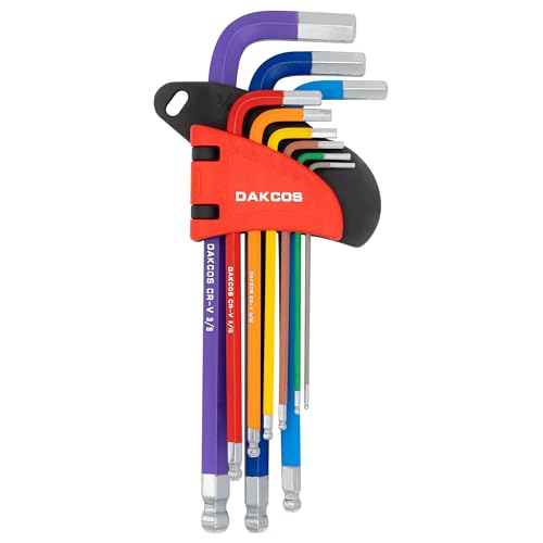 DAKCOS Sexkantsnyckelset, 9 delar insexnyckel, sexkantsnyckel, Imperial Ball End insexnyckel set 1/16 tum-3/8 tum, L-nyckel set med färgkodning