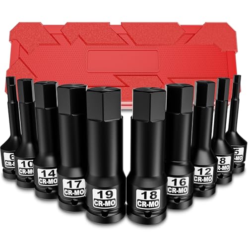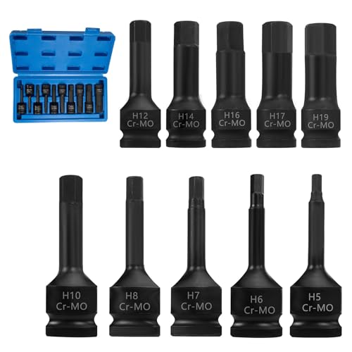 Aurlloct Insexnyckel slagnyckel nötter 1/2 tum, 10 delar kraft insexnyckel sats, 5–19 mm inre sexkant hylsnyckel för gör-det-själv hushåll bil cykel reparation hemmaverktyg