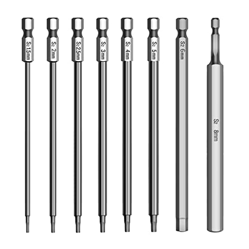 8 stycken Torx bit lång, 150 mm bit set lång, 1/4 tum hexagon insexnyckel skruvmejselset, för H1.5, H2, H2.5, H3, H4, H5, H6, H8-bitsset