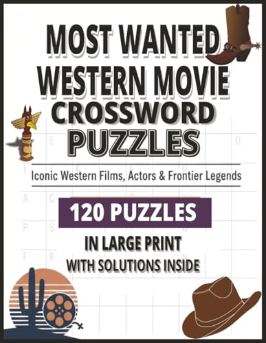 Most Wanted Western Movie Crossword Puzzles: A Classic Film Crossword Collection Featuring Iconic Westerns, Legends & Movie Trivia 120 Unique Puzzles ... Outlaws & Cinema History | Solutions Inside
