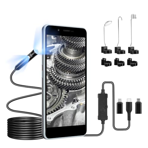 YOVOCA endoskopkamera med ljus, 1920P HD endoskop kamera mobiltelefon, 5,5 mm inspektionskamera rörkamera 5 m med 8 LED-lampor IP67 vattentät för iPhone, iPad, OTG Android-enheter