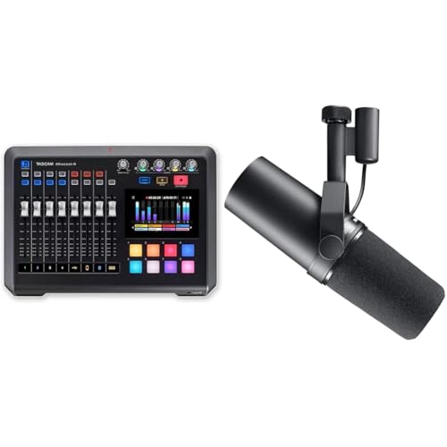Tascam Mixcast 4 & Shure SM7B Sång Dynamisk Mikrofon för Sändning, Podcast och inspelning, XLR Studio Mic för Musik och tal, brett frekvensområde, varmt och mjukt ljud, robust konstruktion, Svart