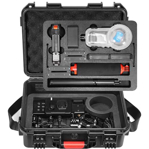 AMAZEAR Hårt fodral för Insta360 X5 kamera och tillbehör, vattentätt skyddande hårt skal bärväska för Insta 360 X4/X5 bunt kombinationssats med axelrem, dubbla lager, svart