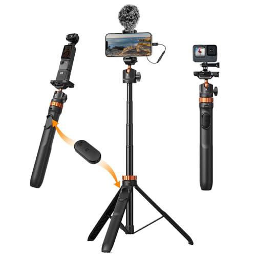Selfie Stick stativ, K&F Concept MS08 selfie-pinne, 158 cm mobiltelefonstativ, stativ för smartphone kompatibel med iPhone/Samsung/DJI Osmo Action/Insta 360, mobiltelefonhållare med avtagbar