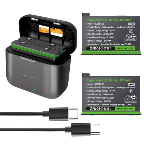 Adicop Insta 360 X3 Vattentätt Batteri Laddare Insta 360 ONE X3, 2PCS 1850mAh Batteribytessats Kompatibel med Insta 360 X3 kamera