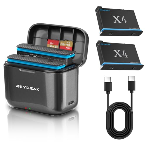 REYGEAK uppladdningsbart litiumbatteri för Insta-360 X4, 2 x 2500 mAh högpresterande batterier med laddare för insta-360 X4 (laddare + 2 batterier