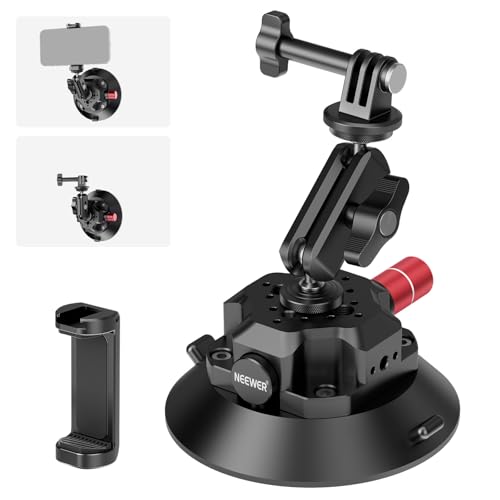 NEEWER 4,5 tum sugkopp kameramontering med kulhuvud magisk arm, 1/4 tum 3/8 tum ARRI-hål, snabbfrigörande bilfäste med telefonhållare och actionkameraadapter kompatibel med iPhone DJI Insta360, CA105