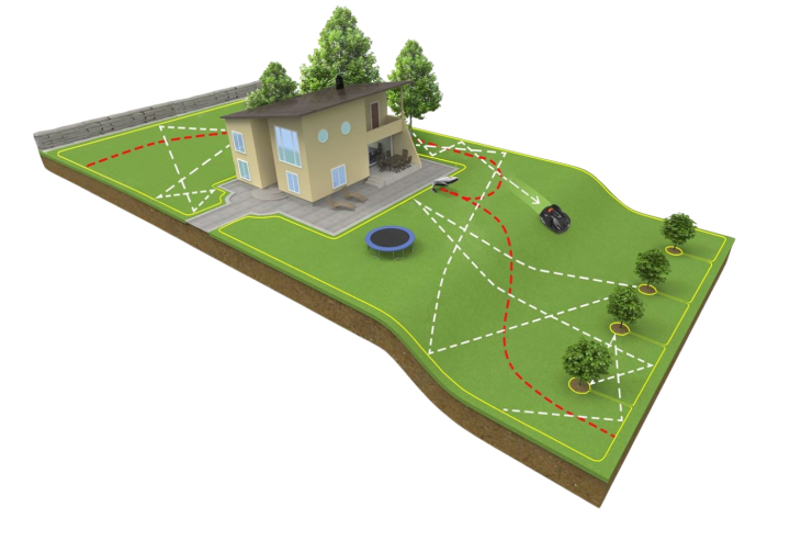 Mova 600 sats robotgräsklippare, trådlös installation och exakt kartläggning upp till 800 m², smart undvikande av hinder, appstyrning, U-formad klippning, tyst drift, säkerhetsvarningar