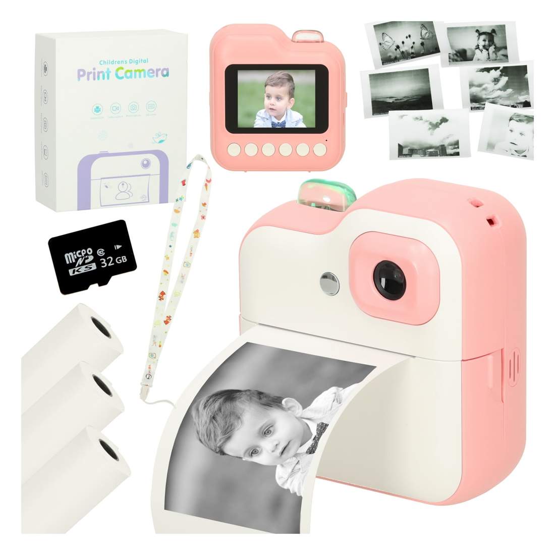 Ainiv Instant Print Camera för barn – dubbel 1080P-kamera med 3 rullar utskriftspapper, 32 GB SD-kort, 5 färgpennor, gåvor för 3-12 år gamla pojkar och flickor, rosa