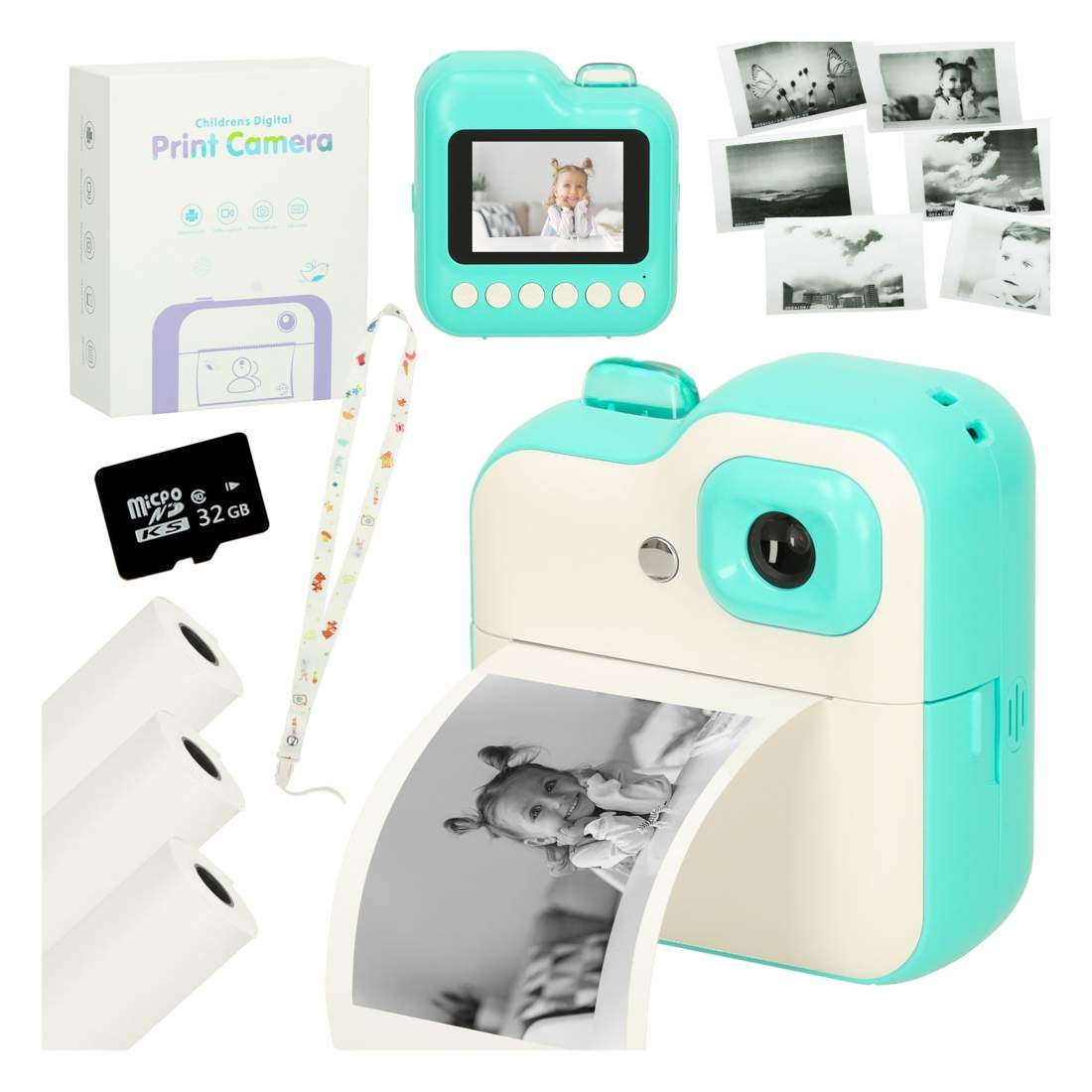 CalineGam Instant Camera Children, 3,0 tums skärm 48 MP barnkamera Instant Camera med 32 GB-kort, 1080P HD-kamera Barn Instant Print, present för 3-12 pojkar och flickor (grön)