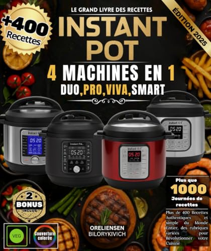 LE GRAND LIVRE DES RECETTES INSTANT POT : 4 MACHINES EN 1 : DUO, PRO, VIVA, SMART: Plus de 400 Recettes Authentiques et simple du Monde Entier, des rubriques variées pour Révolutionner votre Cuisine