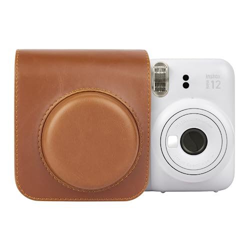 MUZIRI KINOKOO fodral för Instax Mini 12 Instant Film Camera - PU-läder skyddsfodral solid färg med justerbar axelrem, Brun, S, Kamerafodral