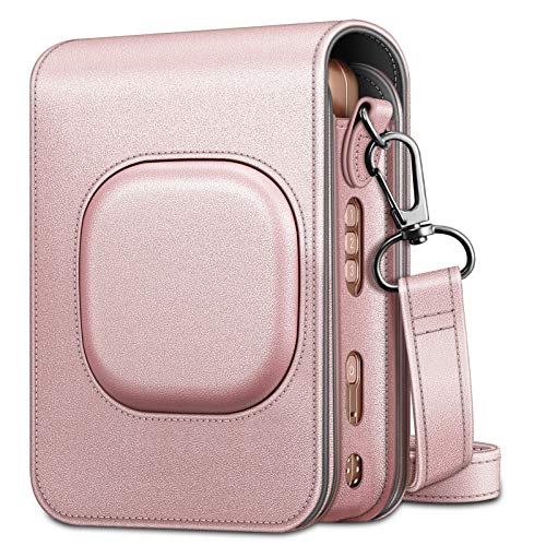 FINTIE Resefodral kompatibelt med Fujifilm Instax Mini LiPlay Hybrid Instant Camera - Veganska läder kameraväska fodral med avtagbar axelrem, roséguld