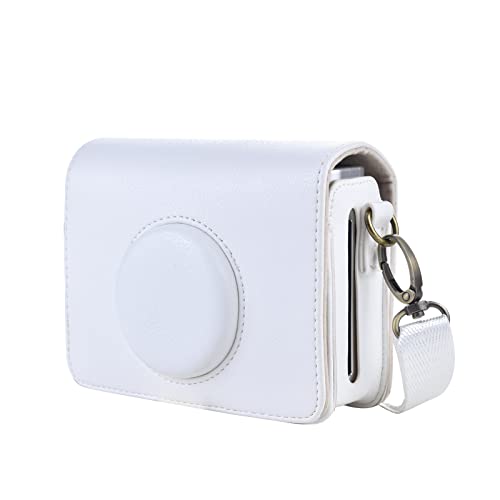 MUZIRI KINOKOO fodral för Instax Mini 12 Instant Film Camera - PU-läder skyddsfodral solid färg med justerbar axelrem, Vitt, fuji mini 12 kamerafodral