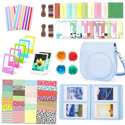 Leebotree Kameratillbehör kompatibla med Instax Mini 12 Instant Camera, helt kamerapaket (fodral/album/ramar/klistermärken) (pastellblå)