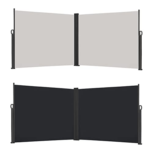 tectake® Sidomarkis Dubbel, Insynsskydd Balkong eller Trädgård, Enkel Hantering, Automatisk Upprullningsmekanism, Insynsskydd, Vindskydd och Solskydd 200 x 600 cm - Svart