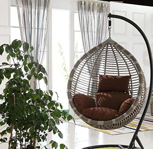 Utomhus hängande swing stol sits kudde, tjockna vattentäta hängande korgstol kuddar med huvud kudde avtagbart skydd för uteplats trädgård balkong,Brown,120 * 90cm