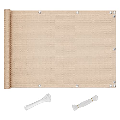 Sunnylaxx Balkonginsynsskydd, 90 x 700 cm, PES (170 g/㎡) staketskärm för balkong och uteplats,Insynsskydd för balkong, med rep och aluminiumöljetter Toupe