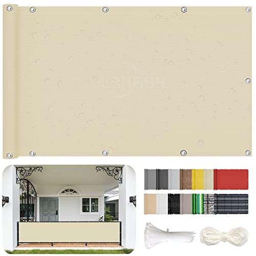 Heng Feng Insynsskydd för balkong, ytvikt 160 g/㎡, 0,9 x 10 m, PES-plast, vattentätt balkongskydd, 95 % UV-skydd, perfekt för soldäck, uteplats, trädgård, utomhuspool, veranda och räcken, gräddvit