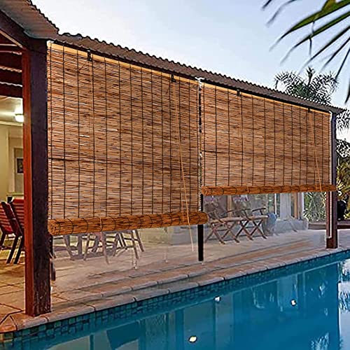 Upprullningsbara bambupersienner, utomhus romerska nyanser för uteplats vattentät, solskydd rullfönster vasskärm, persienn för fönster, ljusfiltrerande insynsskydd, för däck bakgård veranda, lätt att installera