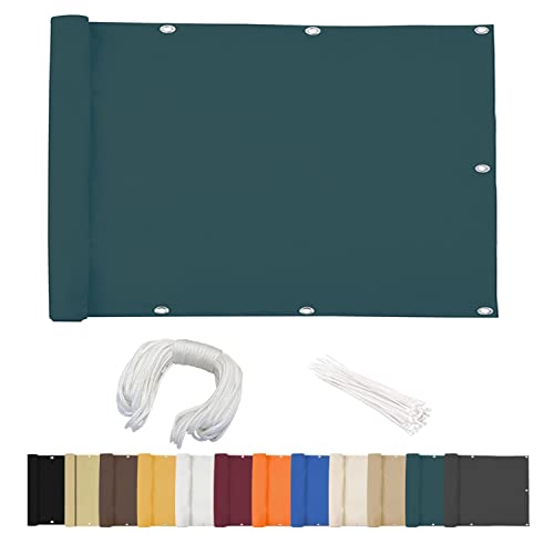 Linmssd Insynsskydd för balkong, 100 x 800 cm, balkongstaket-nät, väderbeständigt, med buntband, för veranda, däck, trädgård, uteplats, balkong – mörkgrön