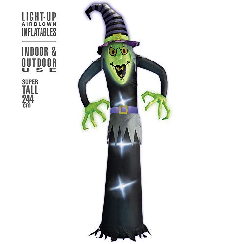 W WIDMANN MILANO Party Fashion 75043 – Uppblåsbar, lysande häxa med integrerad fläkt, 244 cm, dekoration, halloween