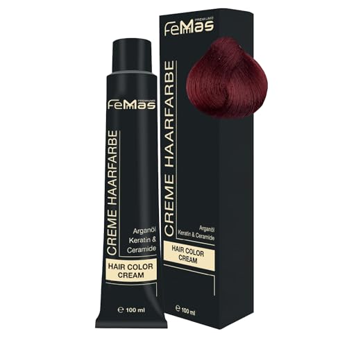 FemMas Hårfärg, mörkblond intensiv röd 6.66, professionell kräm med arganolja, keratin och ceramider, permanent färgning eller toning för varaktiga resultat, 100 ml