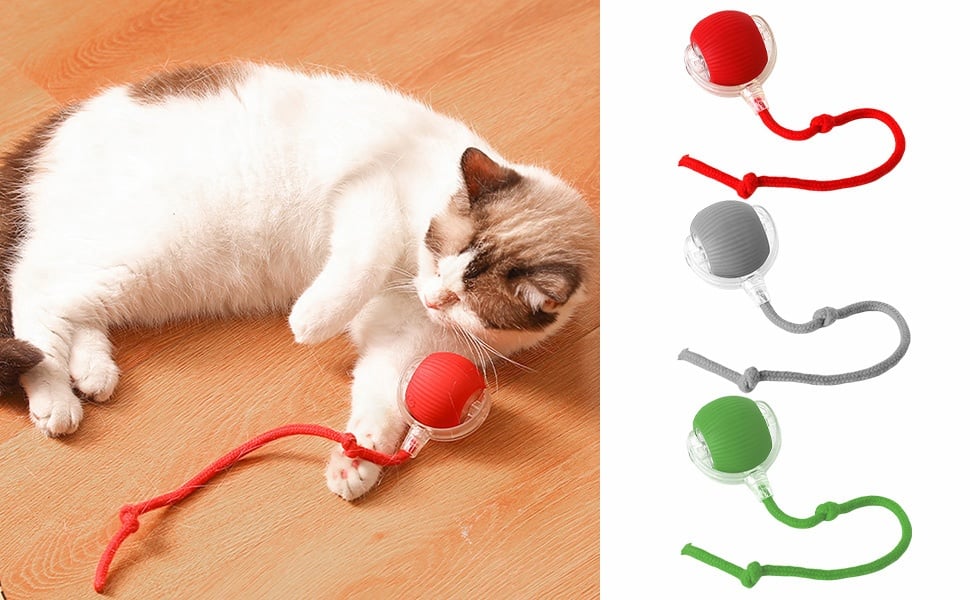 GingerUPer Kattleksak för inomhuskatter vuxen kattunge, kattleksak interaktiv fjäder teaser stav boll leksaks set för katt och katter (röd)