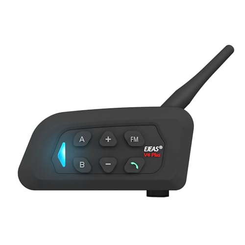 EJEAS V4 Plus motorcykel intercom, motorcykelhjälm Bluetooth 5.1-headset med FM- och CVC-brusreducering, bra ljudkvalitet och stabil anslutning för 4 personer full duplexintercom (1-pack)