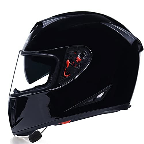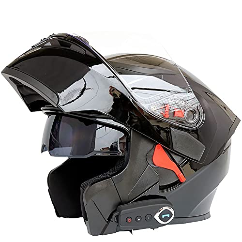 DOPORA Motorcykel Bluetooth-hjälm, Full Face Inbyggd Bluetooth-intercom Vattentät MC-hjälmar Bluetooth-modulära hjälmar Dubbla visir ECE-godkända för män kvinnor,Bright black,XL 61~62cm