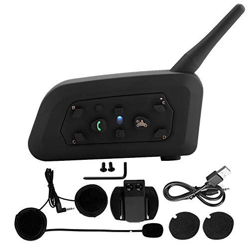 Aramox 1PC Bluetooth Intercom, vnetphone V6-1200 motorcykelhjälm trådlös Bluetooth intercom händer hörlurar för 6 personer, Svart