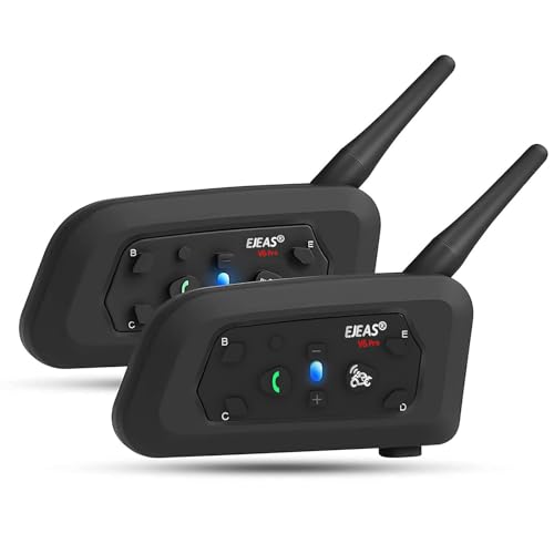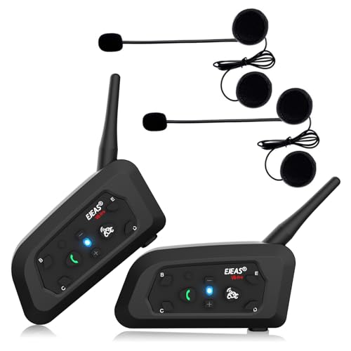 EJEAS V6 Pro Motorcykelhjälm, Bluetooth, Intercom, 1 200 m, 2 personer, Full Duplex, Trådlös, Anslutning upp till 6 åkare, Skidåkning och Klättring (2-pack)