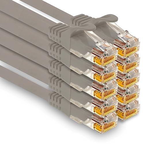 1aTTack.de – 10 x 0,5 m Cat7 nätverkskabel, Cat.7 Ethernet, LAN & Cat 7 patchkabel för maximal internet-hastighet och ansluter alla enheter till RJ 45-kontakt grå
