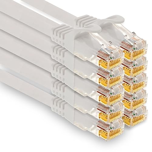 1aTTack.de – 10 x 1,0 m Cat7 nätverkskabel, Cat.7 Ethernet, LAN & Cat 7 patchkabel för maximal internet-hastighet och ansluter alla enheter till RJ 45-kontakt vit