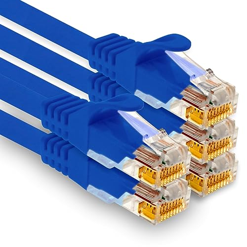 1aTTack.de – 5 x 2,0 m Cat7 nätverkskabel, Cat.7 Ethernet, LAN & Cat 7 patchkabel för maximal internet-hastighet och ansluter alla enheter med RJ 45-kontakt blå