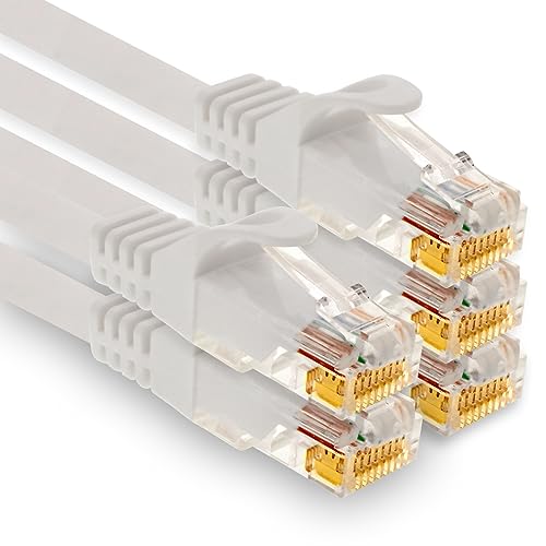 1aTTack.de – 5 x 2,0 m Cat7 nätverkskabel, Cat.7 Ethernet, LAN & Cat 7 patchkabel för maximal internet-hastighet och ansluter alla enheter med RJ 45-kontakt vit
