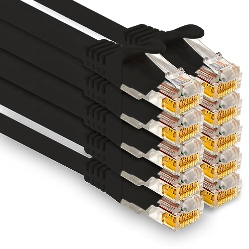 1aTTack.de - 10 x 0,25 m Cat7 nätverkskabel, Cat.7 Ethernet, LAN & Cat 7 patchkabel för maximal internet-hastighet och ansluter alla enheter med RJ 45-kontakt svart
