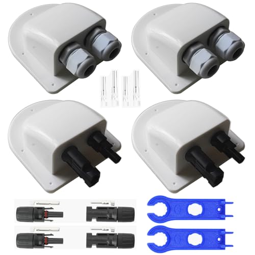 GTIWUNG 2 stycken takutlopp solkabelutmatning kopplingsdosa med solpanel kontakt ABS dubbel kabelgenomföring hölje 2 stycken kabelgenomföring vattentät IP68, vit