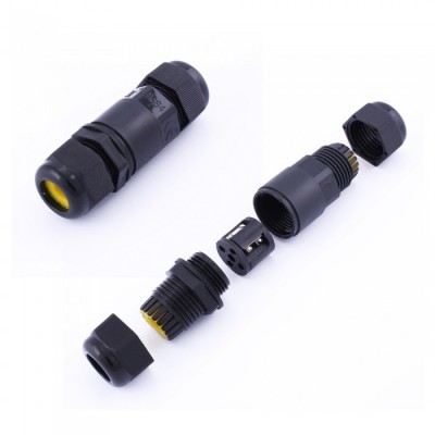 PEBA® IP68 vattentät kabelkontakt utomhus, 2-vägs vattentät kopplingsdosa, 3-stifts kabelkontakt, lämplig för kablar Ø4 mm-12 mm (paket med 2)