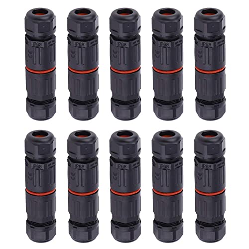 Aiqeer 2 Stycken 3-Polig Utomhus Vattentät Kabelkontakt, IP68 Vattentät Utomhuskabelkontakt Kopplingsdosa, Lämplig för kablar med 5~9 mm Diameter (Skruvtyp)