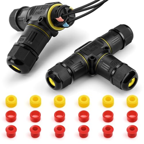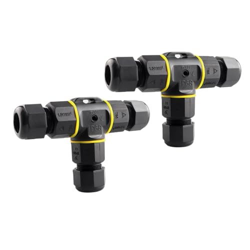 QitinDasen 2 Stycken T-Shape 3-Vägs Utomhus Vattentät Kabelkontakter, IP68 Vattentät Kopplingsdosa Utomhus Kabelkontakt, för Kabeldiameter 5~9 mm (Skruv Typ)