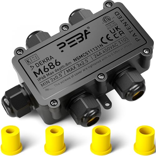 PEBA® IP68 Vattentät kopplingsdosa, 3-vägs kopplingslåda, utomhus vattentät Kabelkontakt, anslutningsbox, kopplingsdosor, fördelningsdosa, kabelanslutning för Ø 4 mm till 14 mm kabel, svart fyra pack