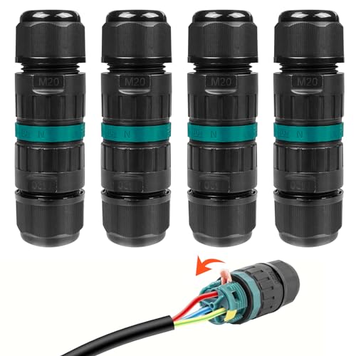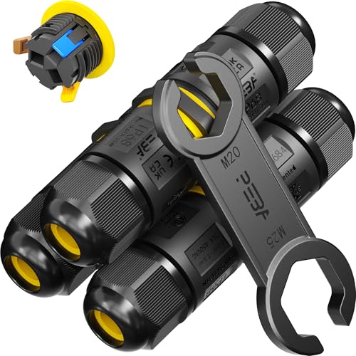 Fousenuk Kabelkontakt IP68, vattentät kabelkontakt, vattentät kabelanslutning, kabelmuff, 3-polig jordkabel, anslutningsmuff, kopplingsdosa, 4-pack